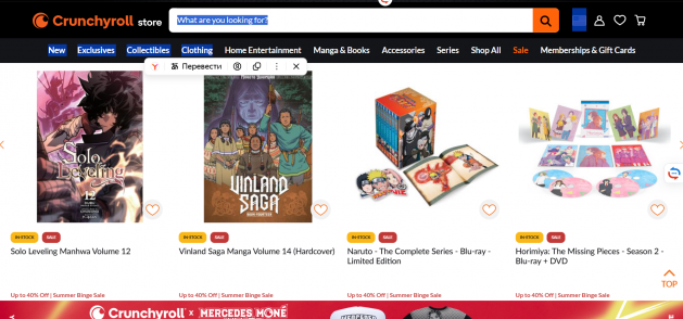 Crunchyroll Store is one of the most recognizable anime retailers in North America. It offers more than 22,000 items from figures, manga, and collectibles. In addition to trade, the company is engaged in publishing activities, adapting anime films and foreign series for English-speaking viewers.